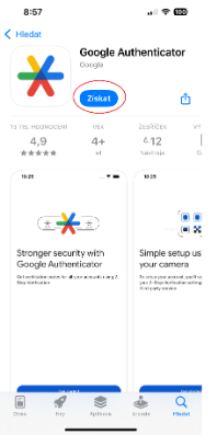 1. Na mobilním zařízení si nainstalujte Google Authenticator aplikaci (na iOS zařízeních je nutné se přihlásit k existujícímu Google účtu).