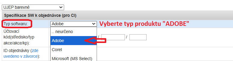 Specifikace SW k objednávce - typ produktu (Adobe)